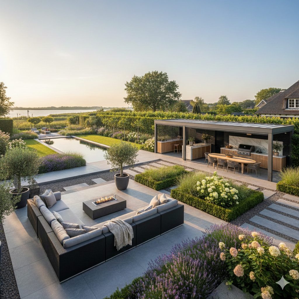 - Complete tuinverlichting (inclusief verlichting aan de gevel van het huis)